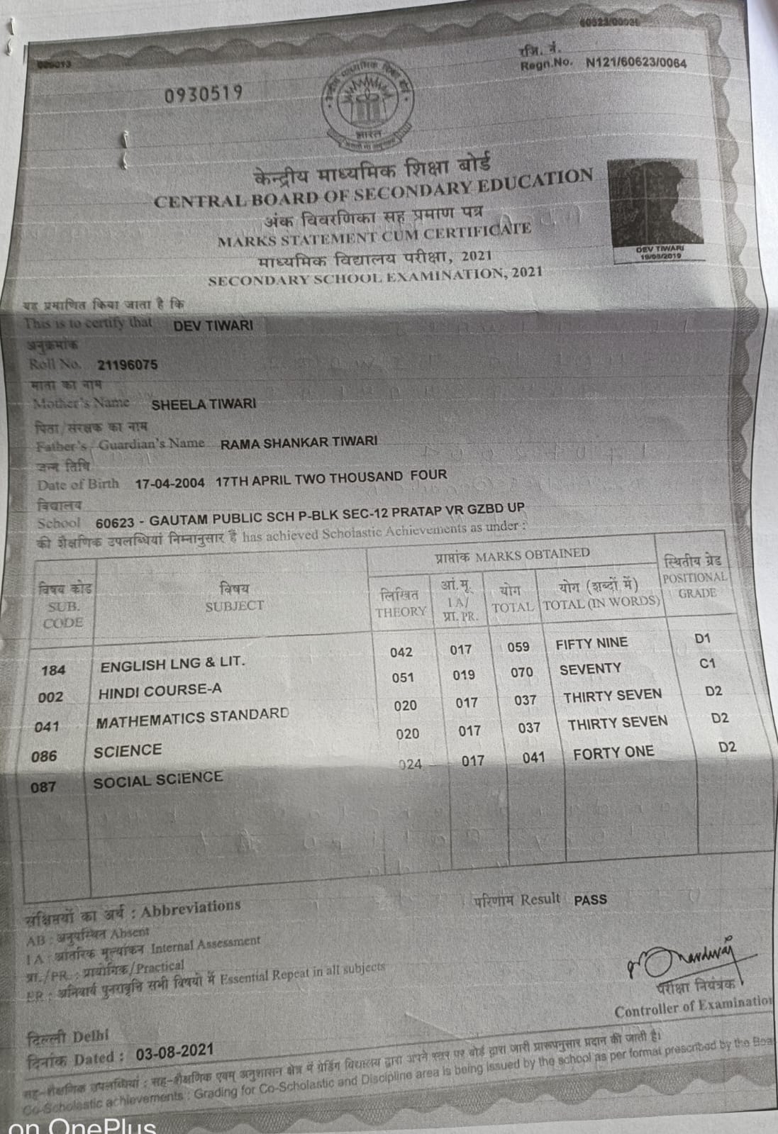 | Exam | Full Marks | Pass Marks | Marks Obtained |