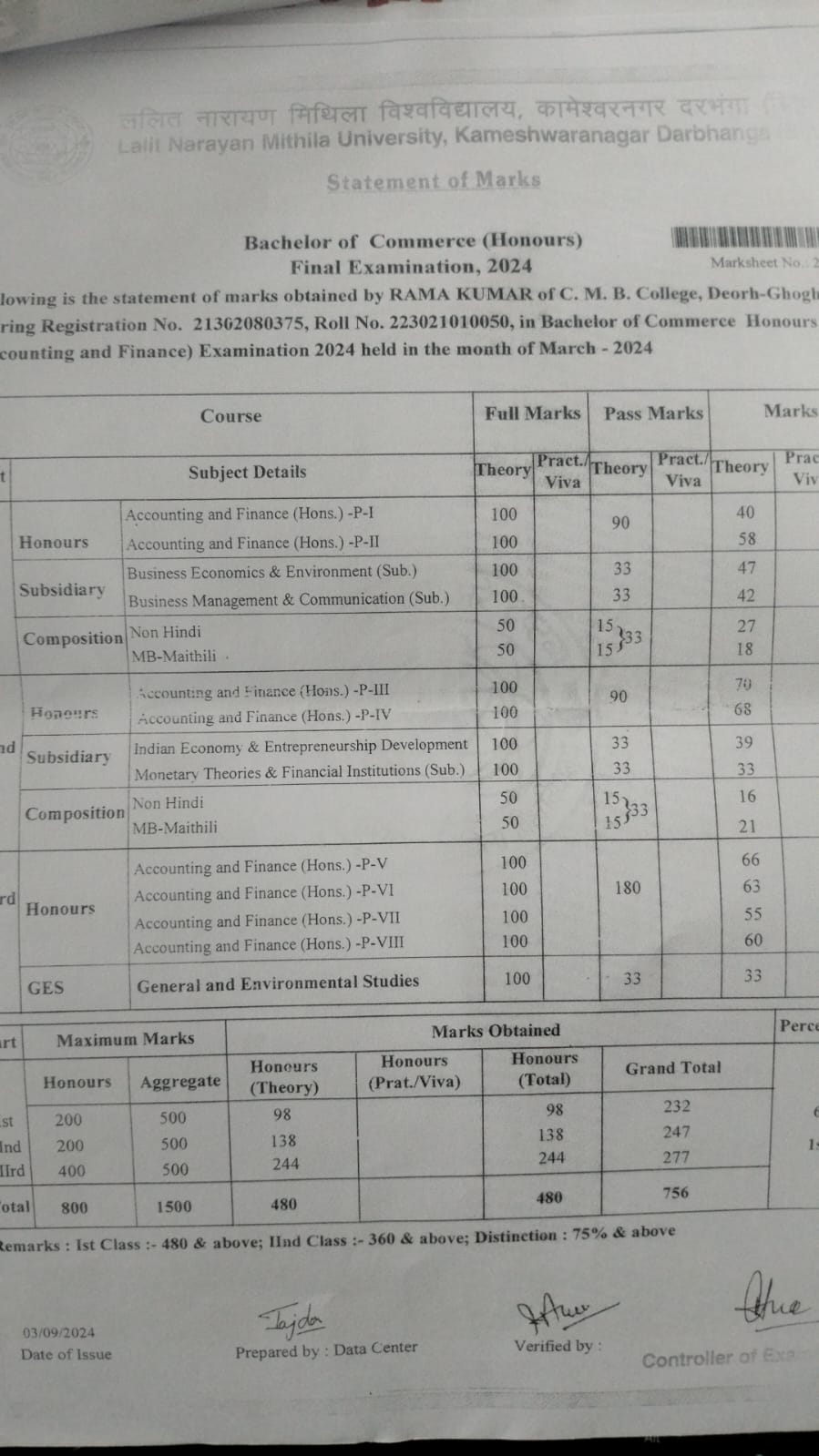 | Exam | Full Marks | Pass Marks | Marks Obtained |