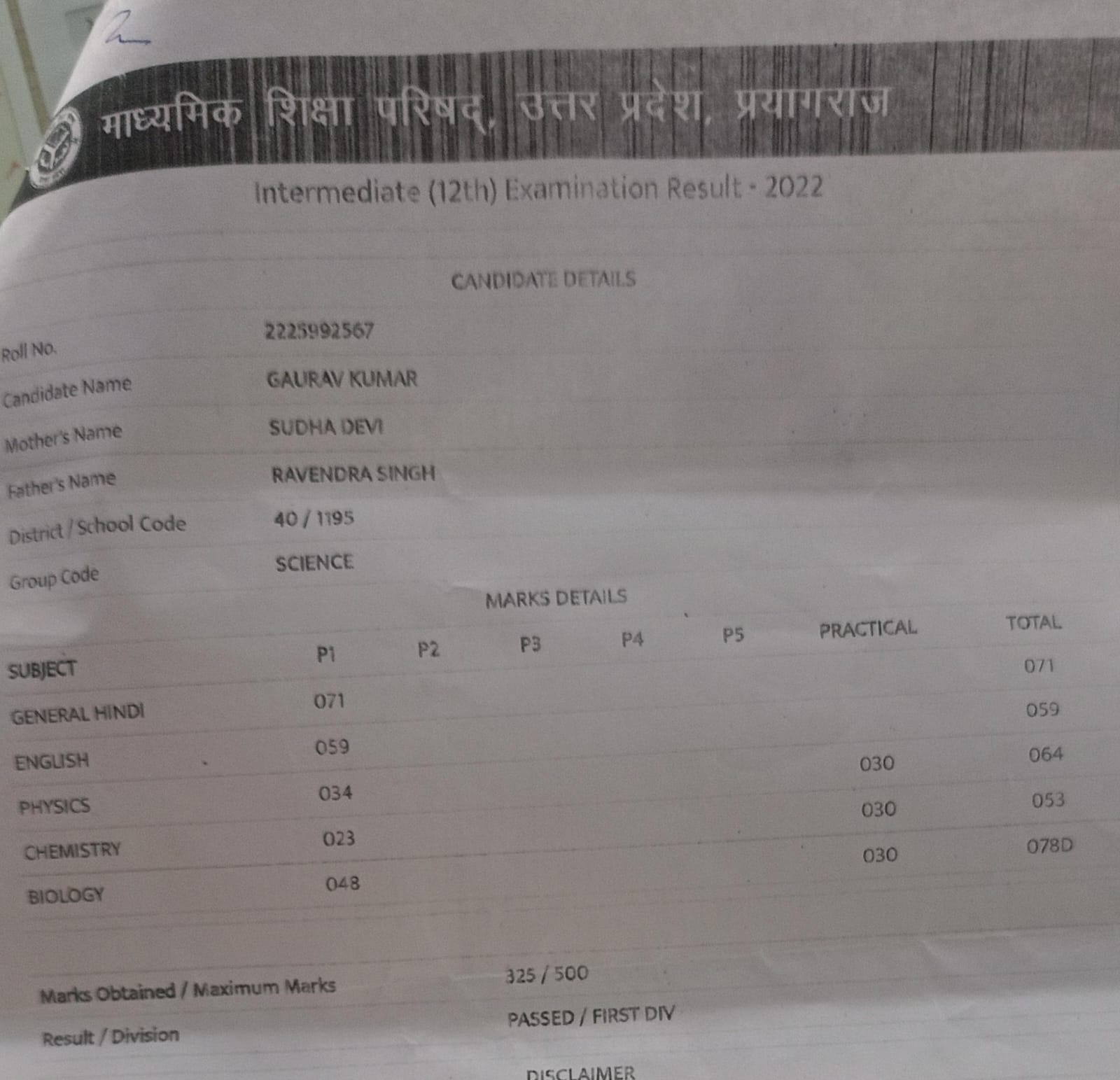 | Exam | Full Marks | Pass Marks | Marks Obtained |