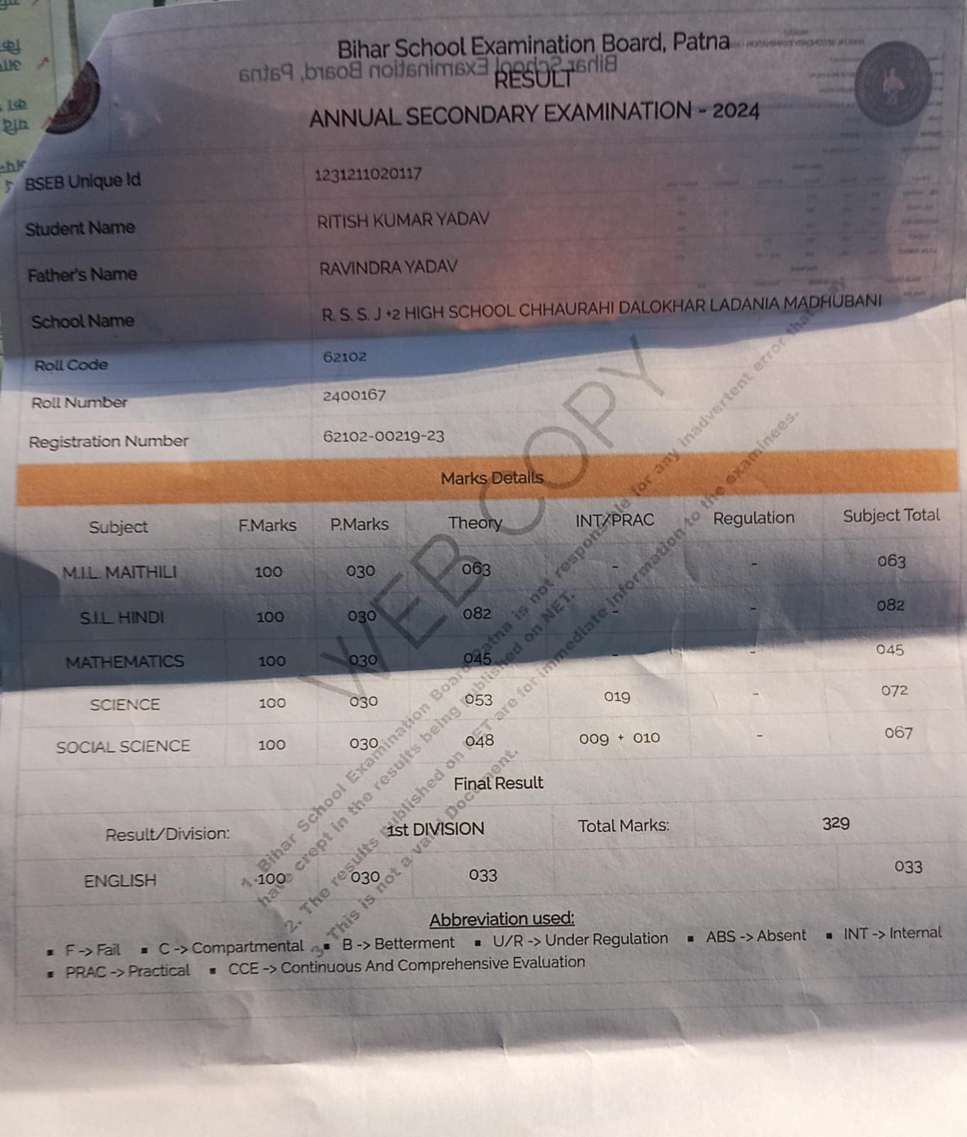 | Exam | Full Marks | Pass Marks | Marks Obtained |