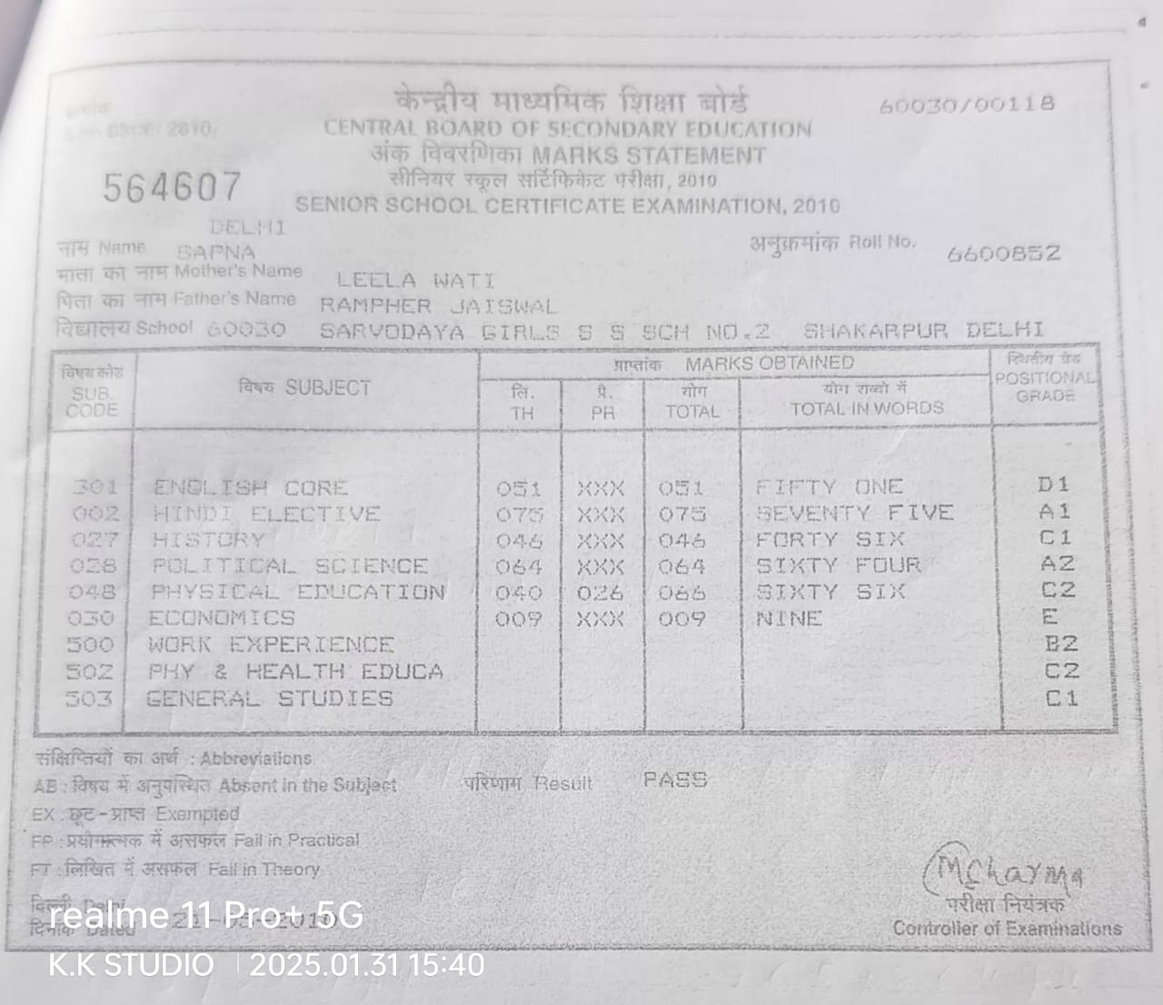 | Exam | Full Marks | Pass Marks | Marks Obtained |