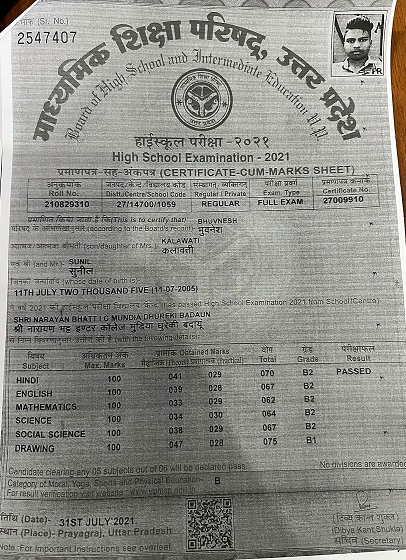| Exam | Full Marks | Pass Marks | Marks Obtained |