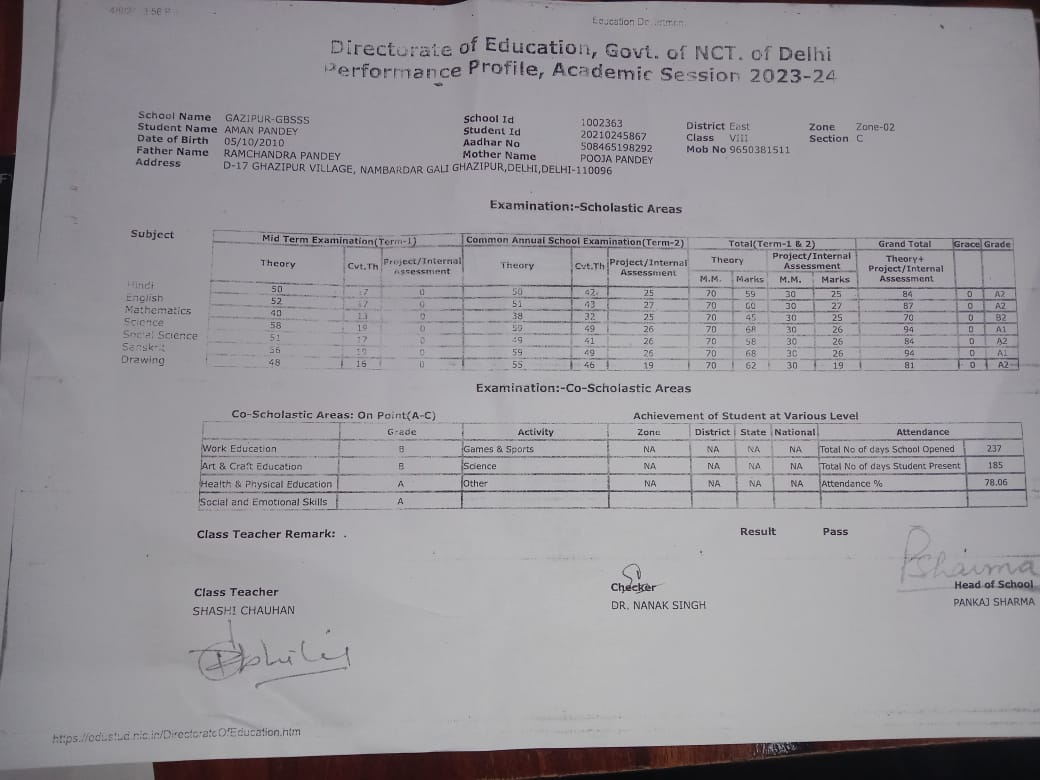 | Exam | Full Marks | Pass Marks | Marks Obtained |