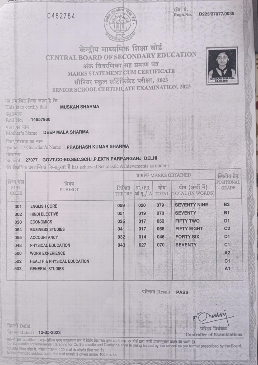 | Exam | Full Marks | Pass Marks | Marks Obtained |