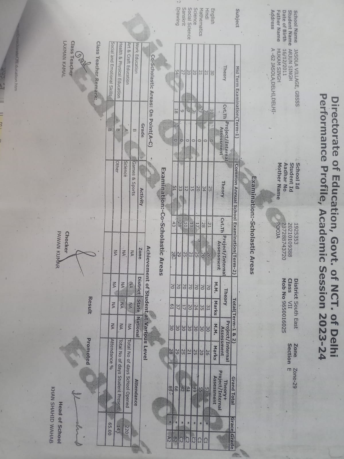 | Exam | Full Marks | Pass Marks | Marks Obtained |