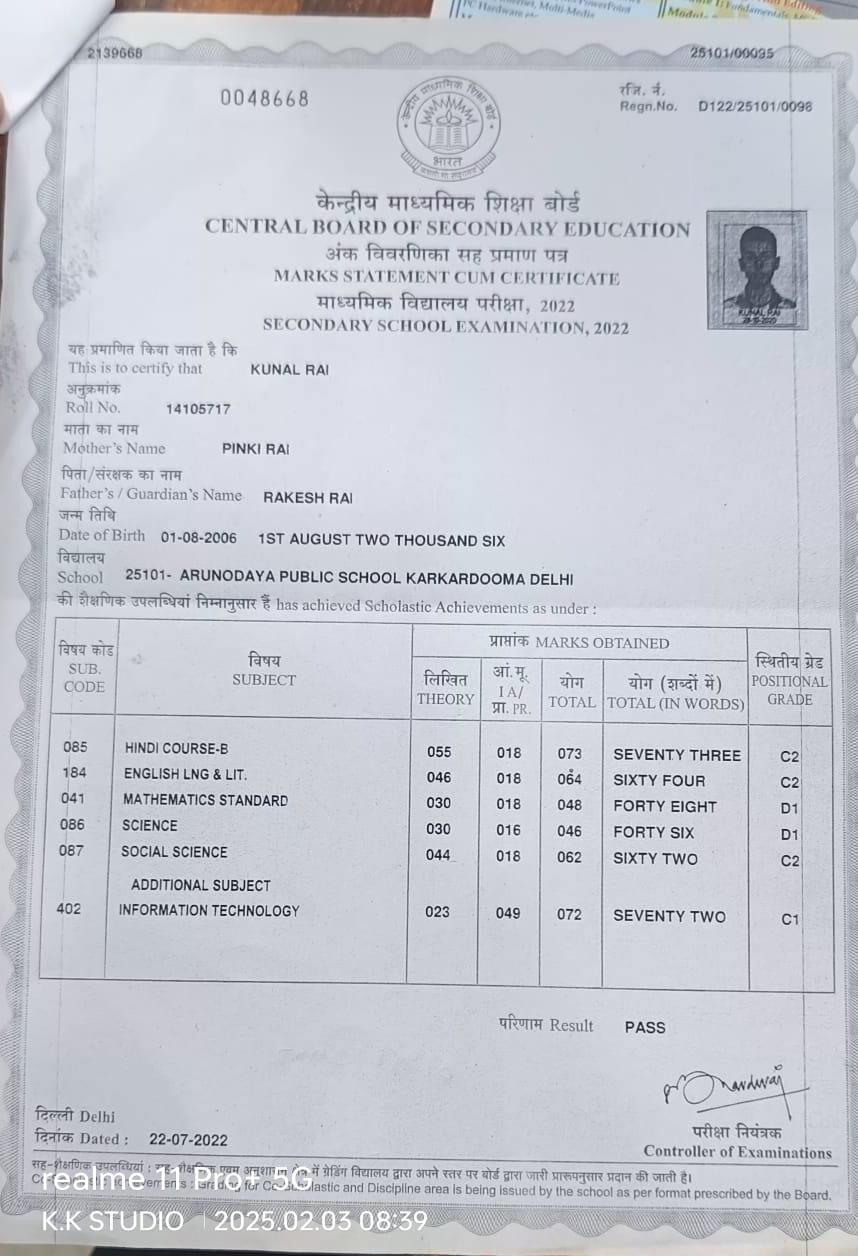 | Exam | Full Marks | Pass Marks | Marks Obtained |