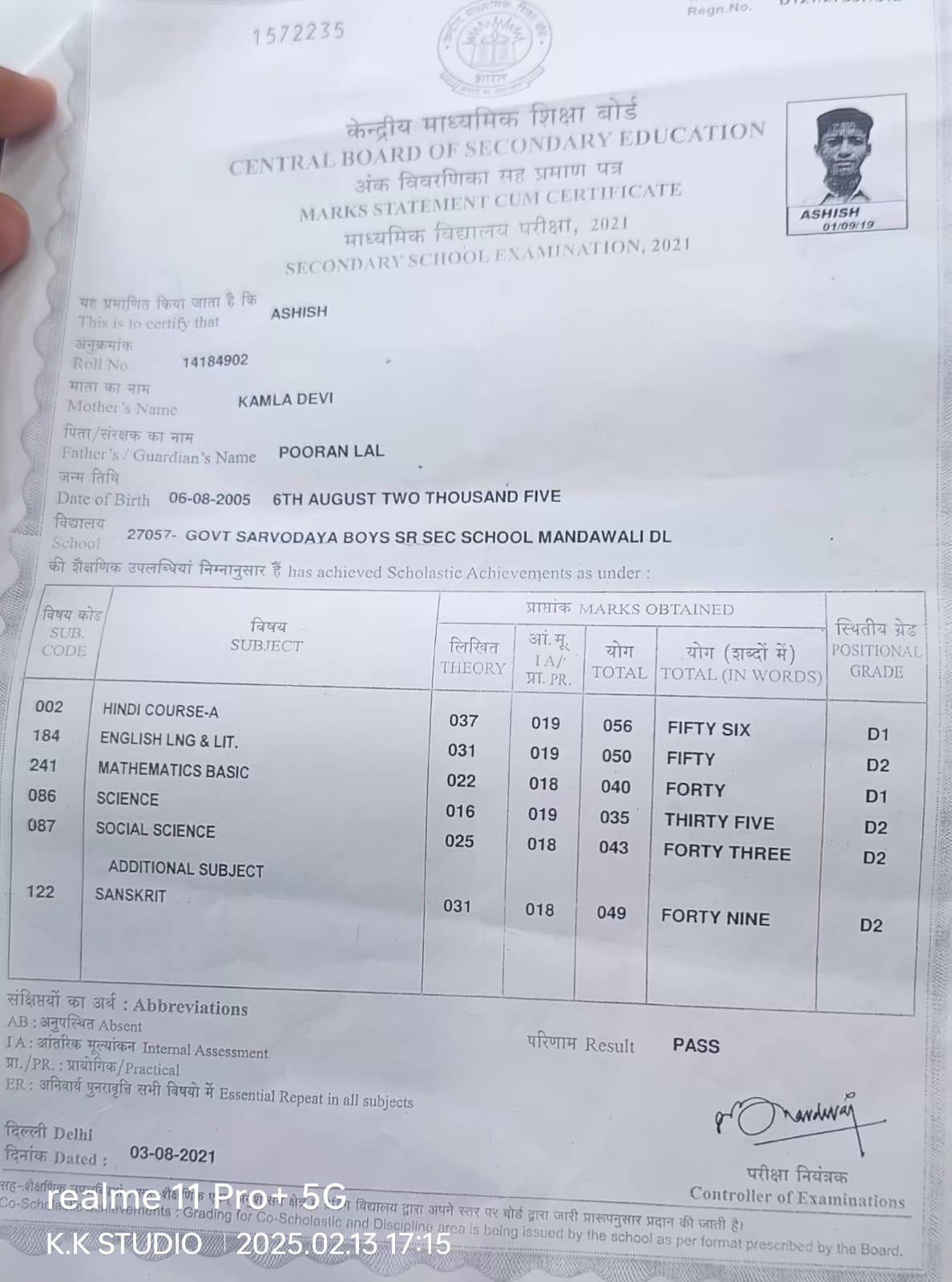 | Exam | Full Marks | Pass Marks | Marks Obtained |