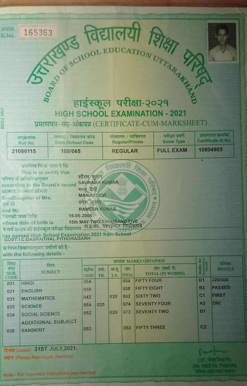 | Exam | Full Marks | Pass Marks | Marks Obtained |