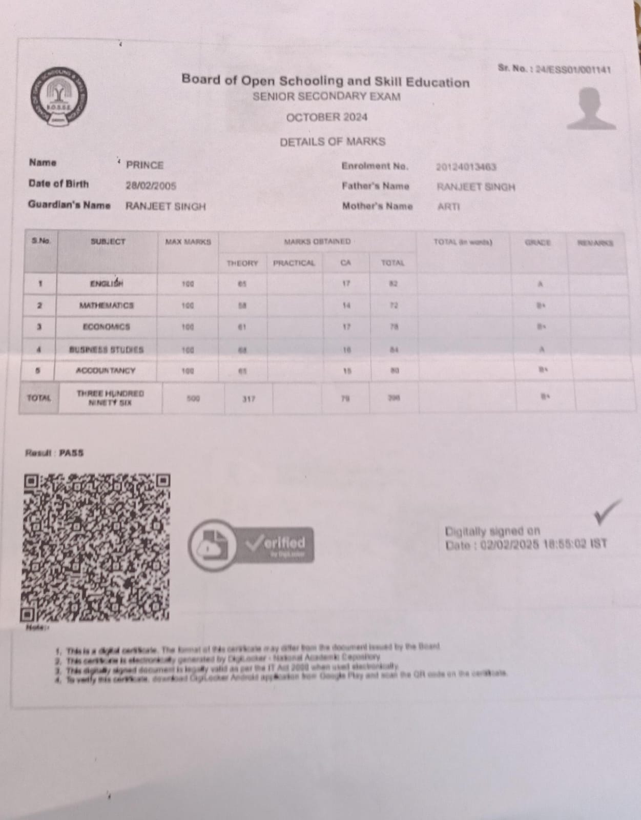 | Exam | Full Marks | Pass Marks | Marks Obtained |