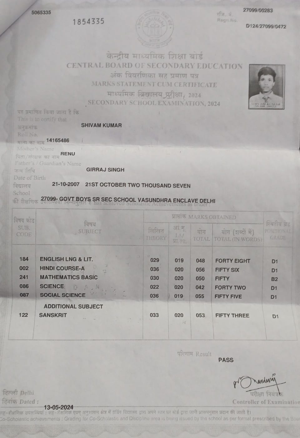 | Exam | Full Marks | Pass Marks | Marks Obtained |