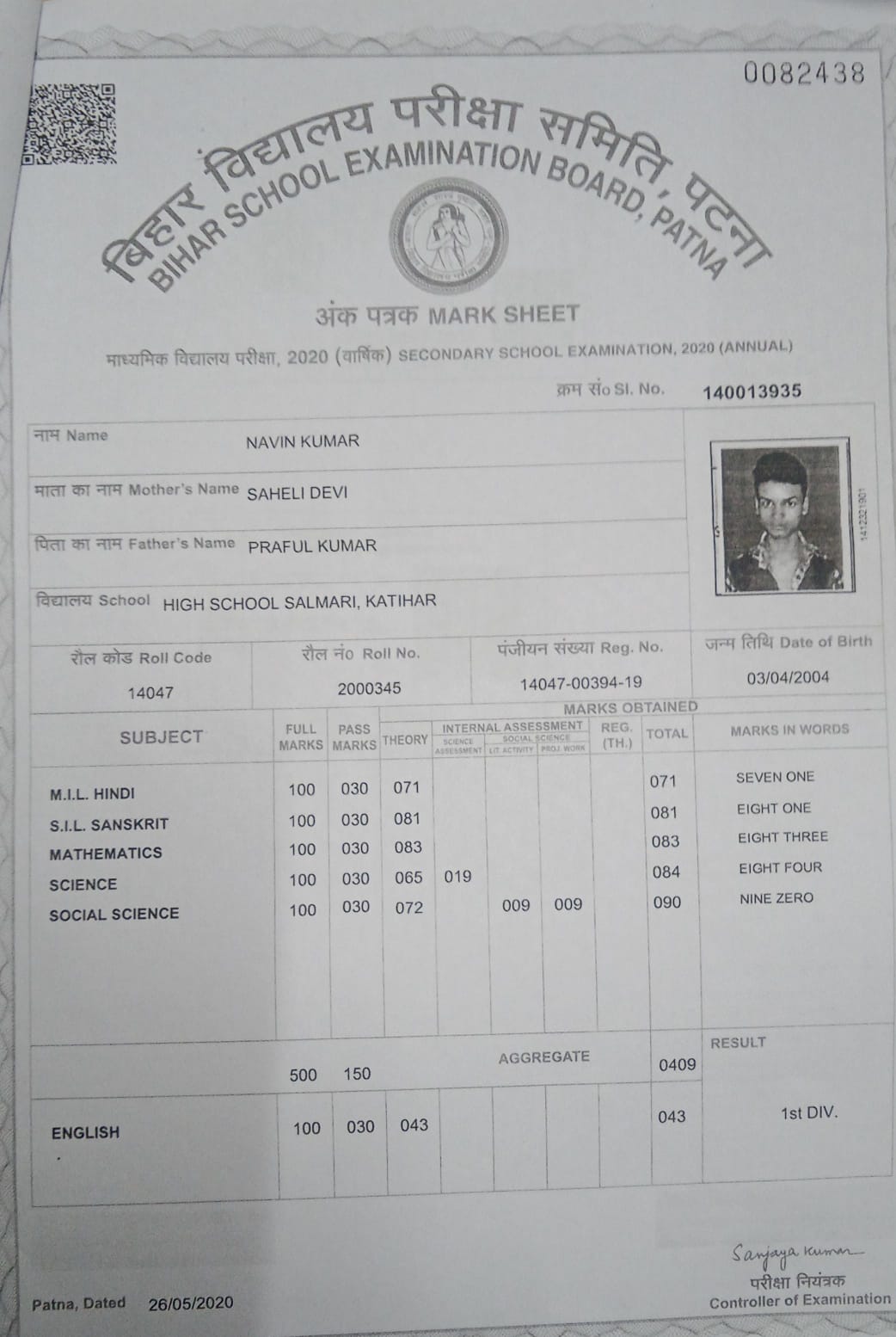 | Exam | Full Marks | Pass Marks | Marks Obtained |