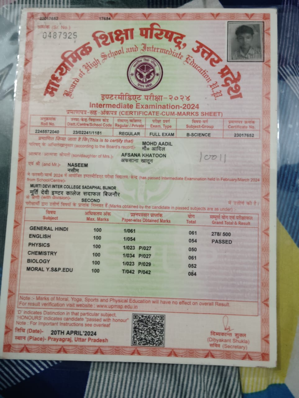 | Exam | Full Marks | Pass Marks | Marks Obtained |