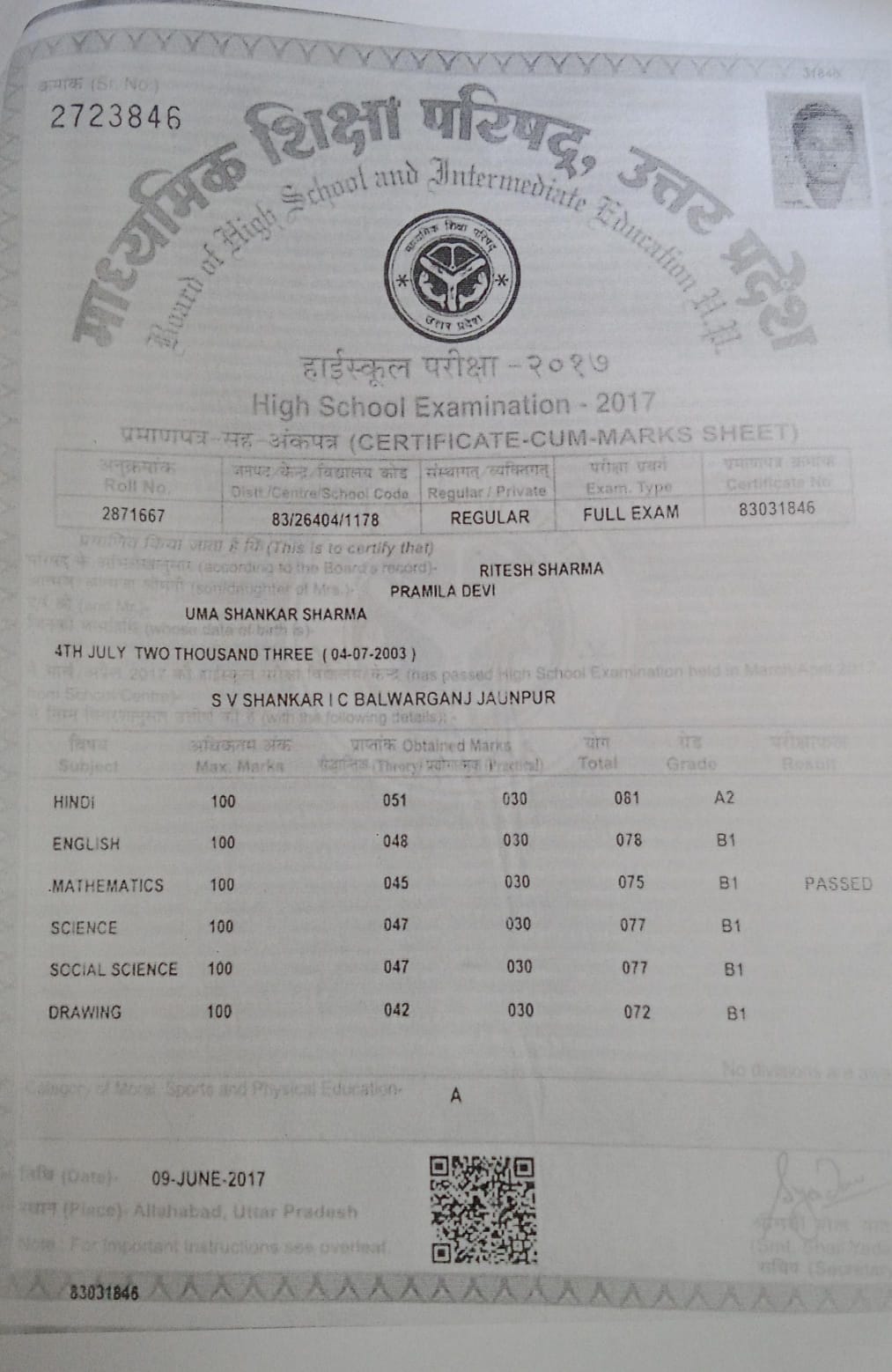 | Exam | Full Marks | Pass Marks | Marks Obtained |