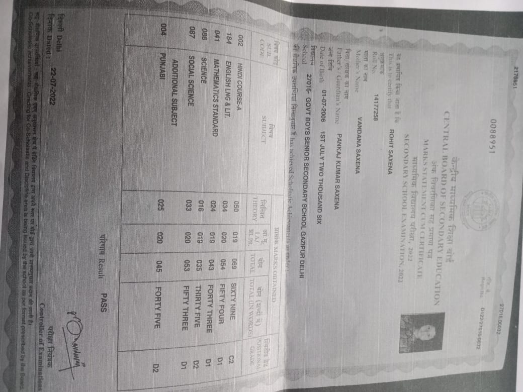 | Exam | Full Marks | Pass Marks | Marks Obtained |