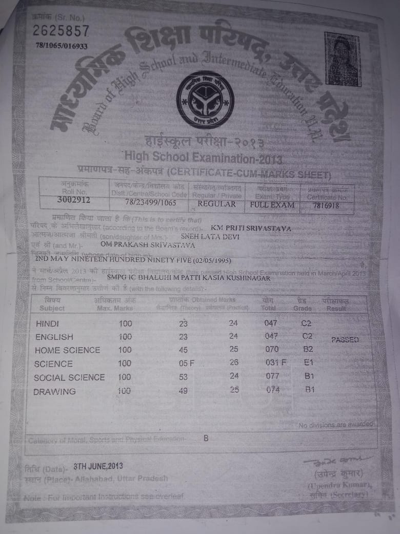 | Exam | Full Marks | Pass Marks | Marks Obtained |