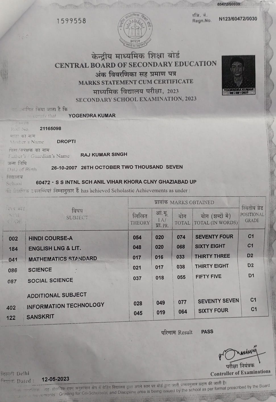 | Exam | Full Marks | Pass Marks | Marks Obtained |