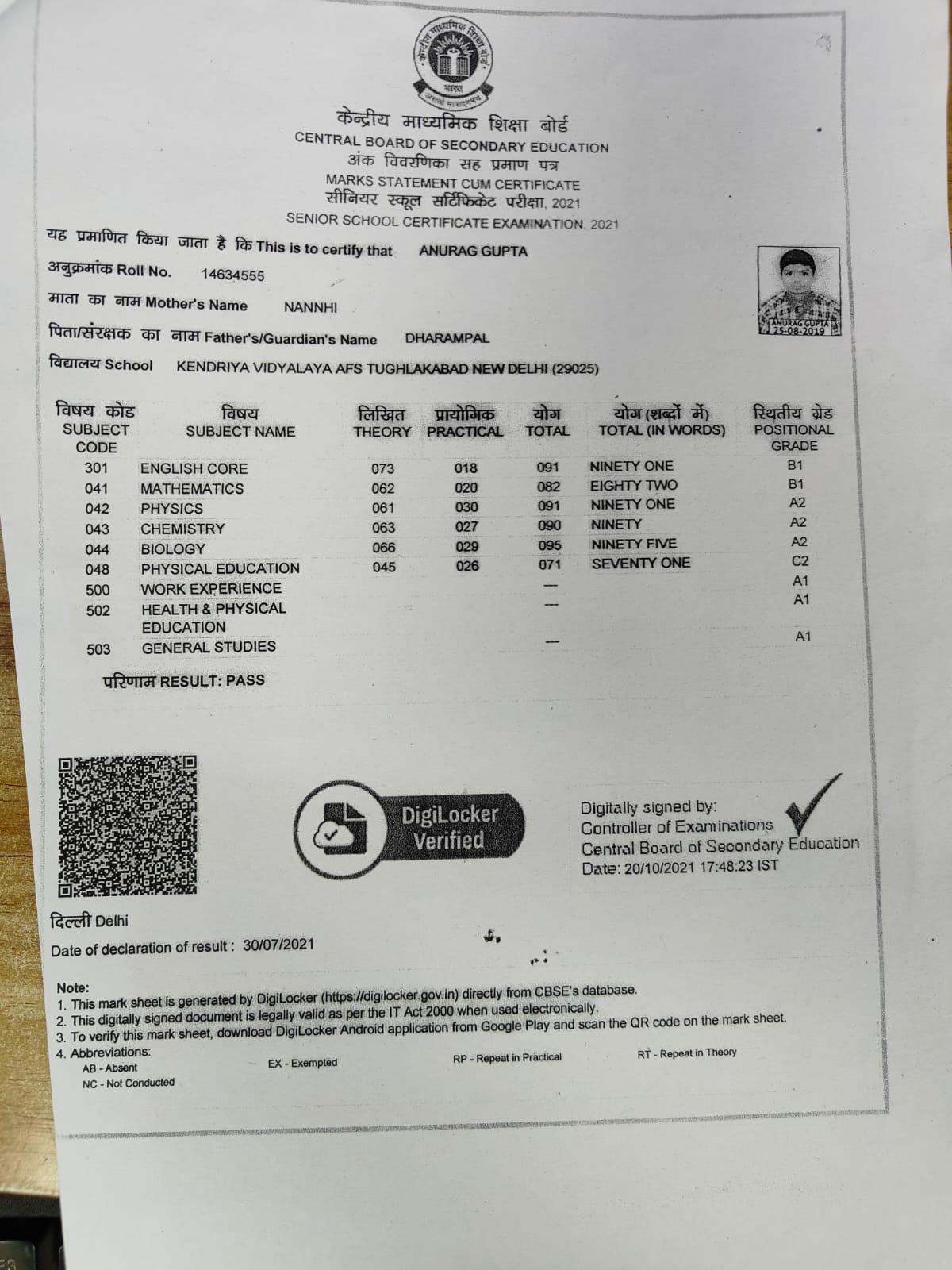 | Exam | Full Marks | Pass Marks | Marks Obtained |