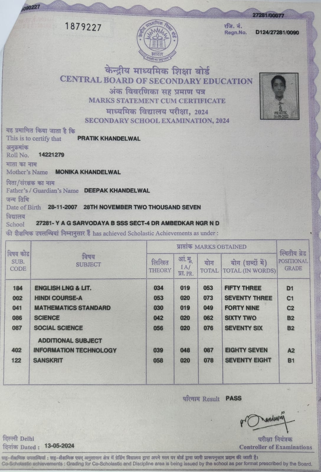 | Exam | Full Marks | Pass Marks | Marks Obtained |