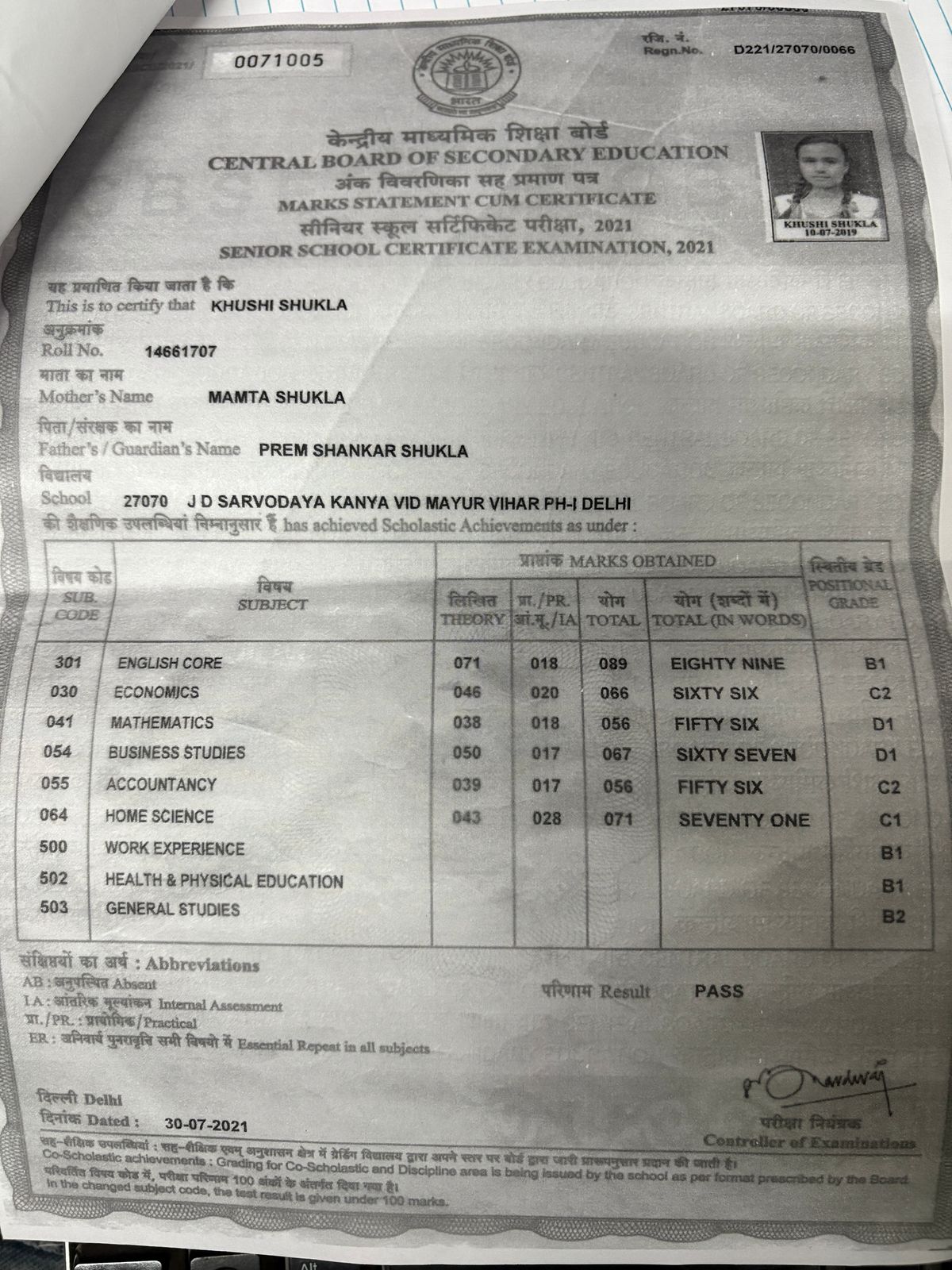 | Exam | Full Marks | Pass Marks | Marks Obtained |