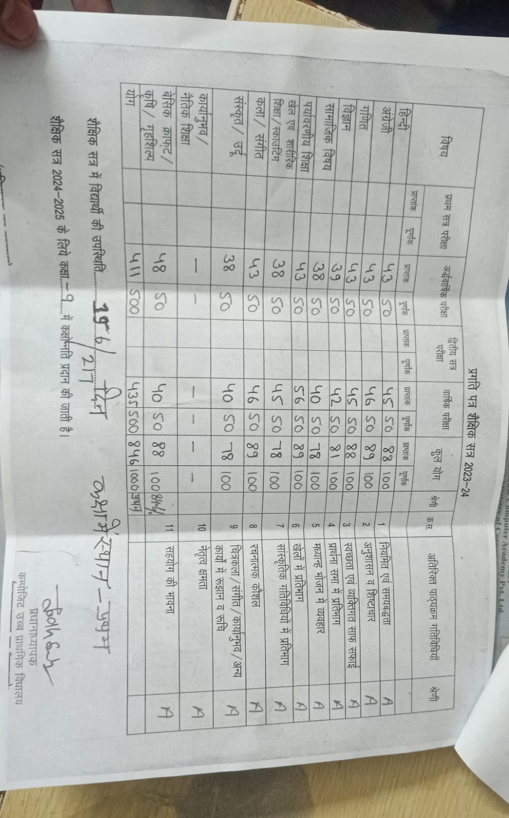 | Exam | Full Marks | Pass Marks | Marks Obtained |