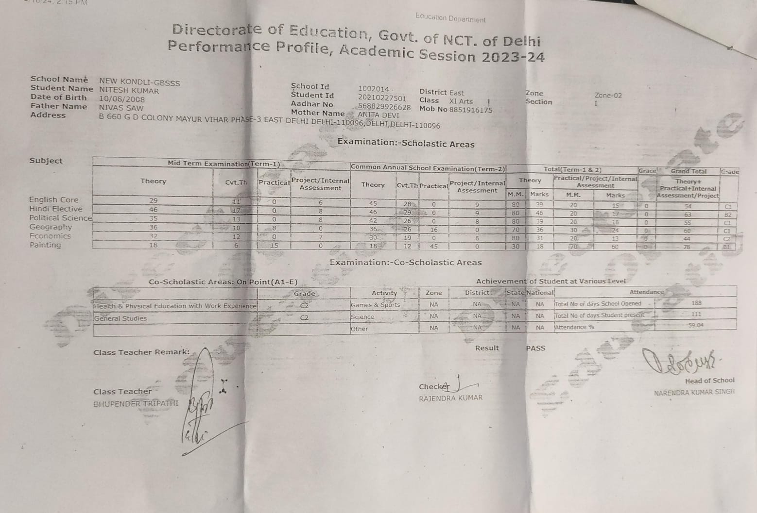 | Exam | Full Marks | Pass Marks | Marks Obtained |