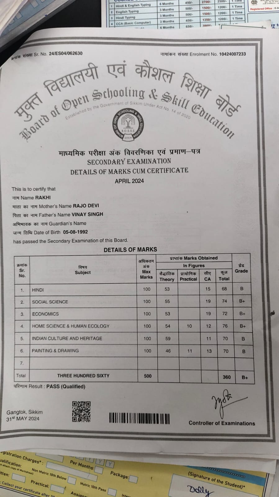 | Exam | Full Marks | Pass Marks | Marks Obtained |