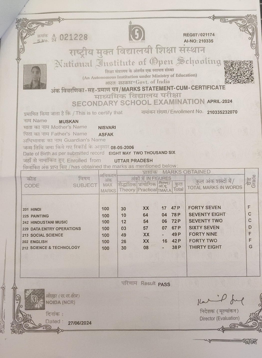 | Exam | Full Marks | Pass Marks | Marks Obtained |