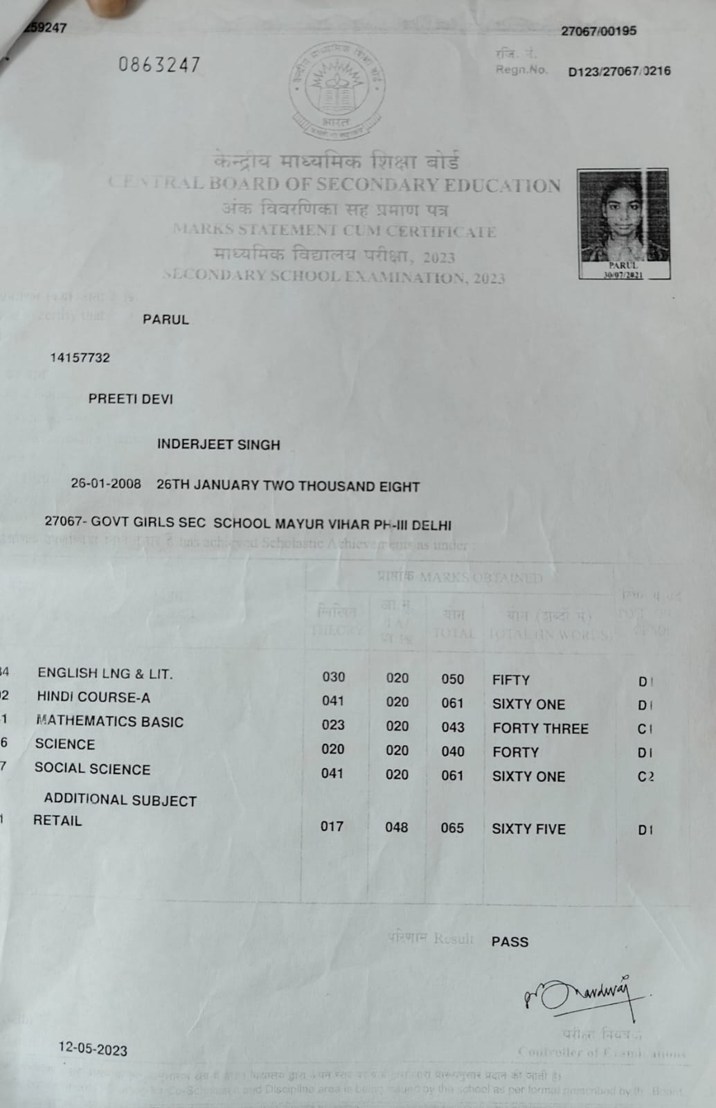 | Exam | Full Marks | Pass Marks | Marks Obtained |