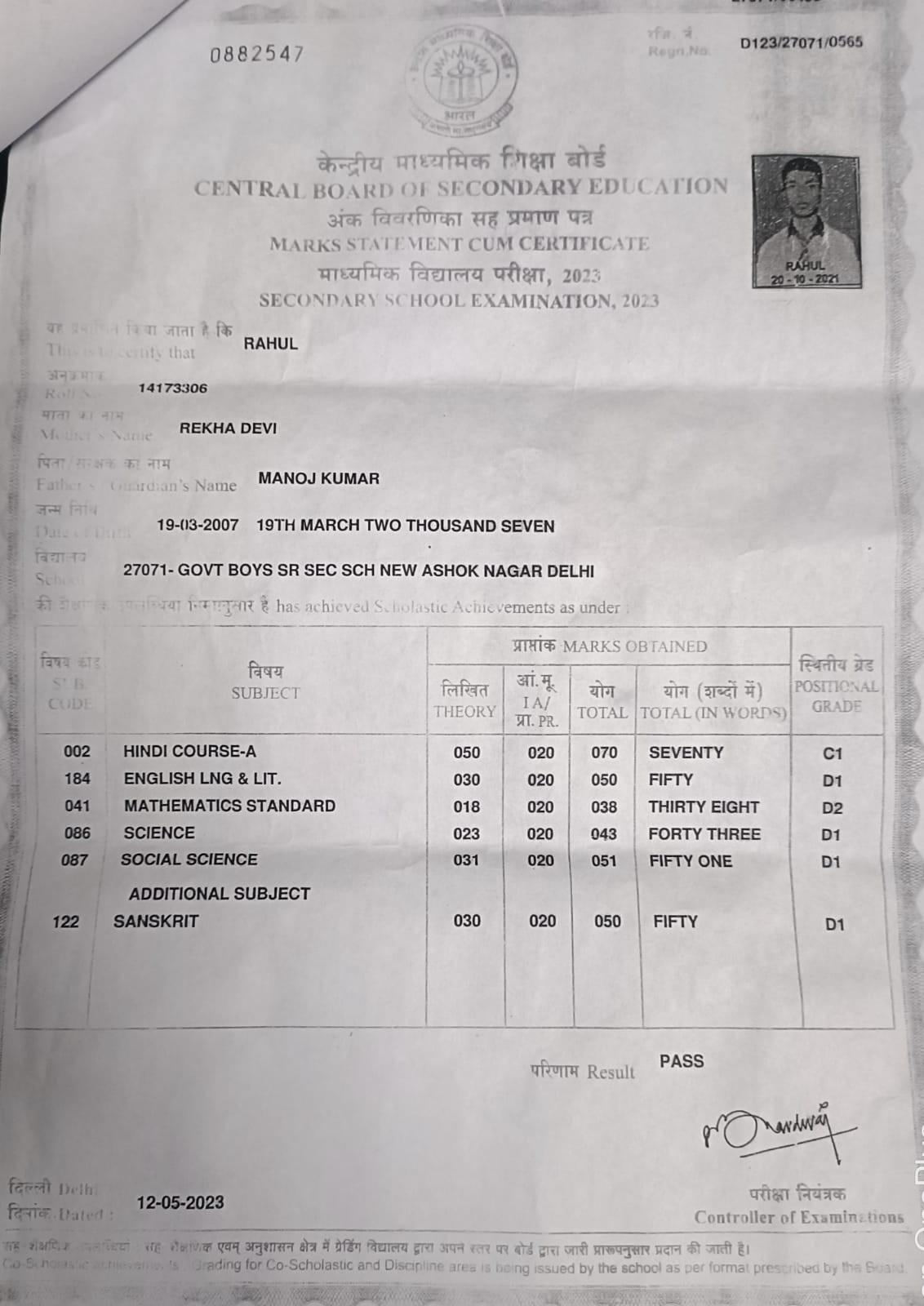 | Exam | Full Marks | Pass Marks | Marks Obtained |