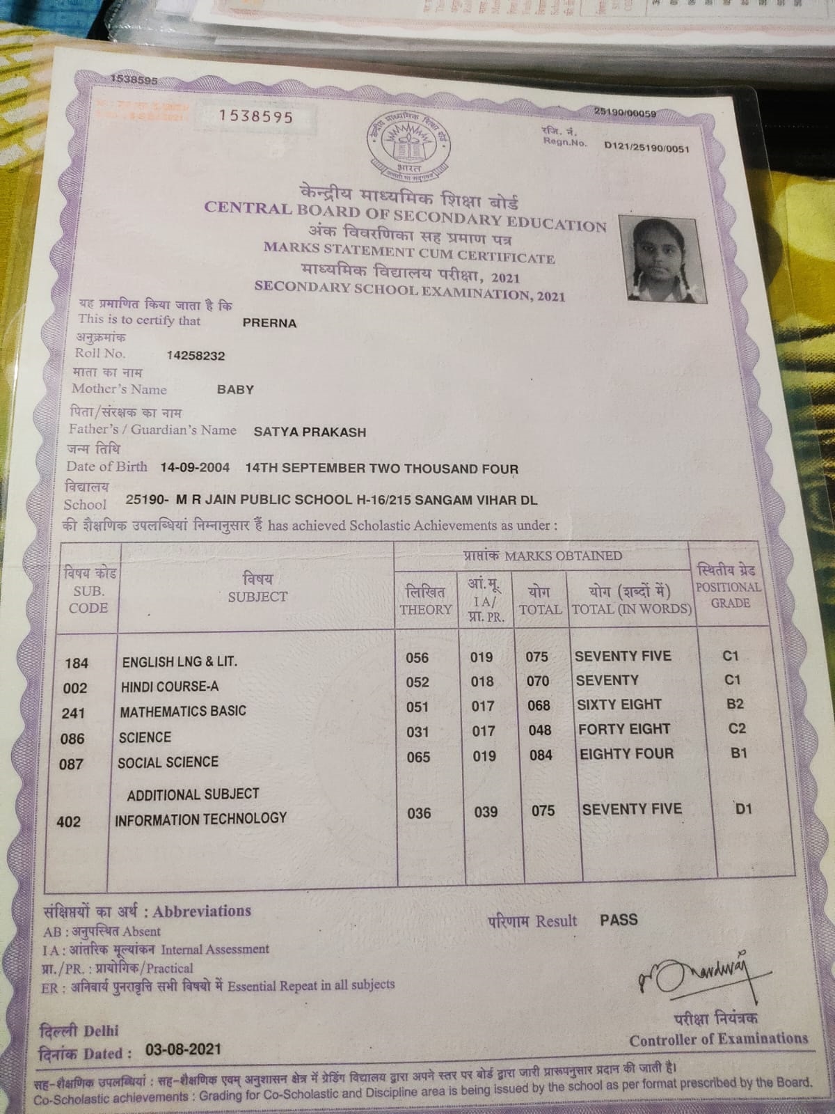 | Exam | Full Marks | Pass Marks | Marks Obtained |