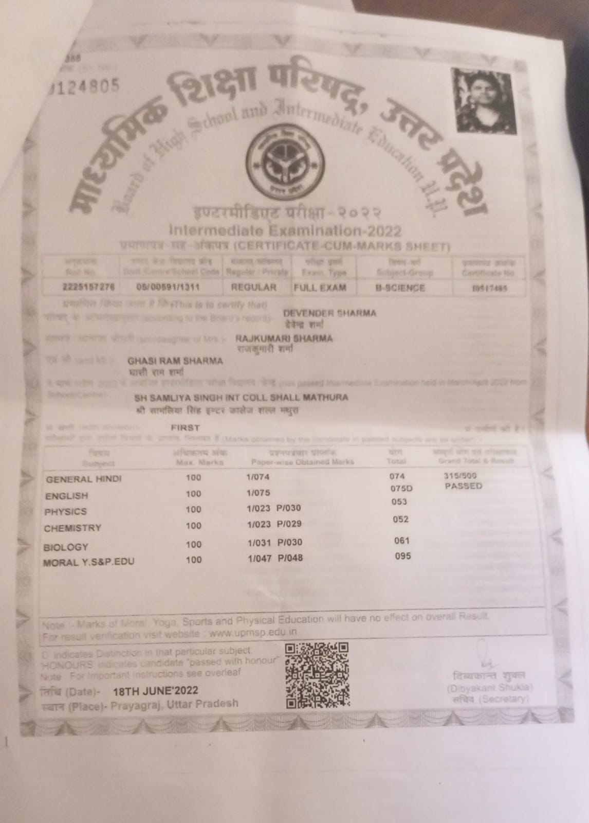 | Exam | Full Marks | Pass Marks | Marks Obtained |