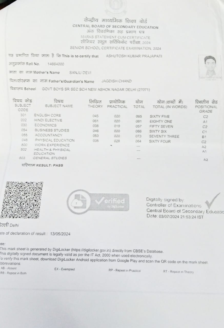 | Exam | Full Marks | Pass Marks | Marks Obtained |