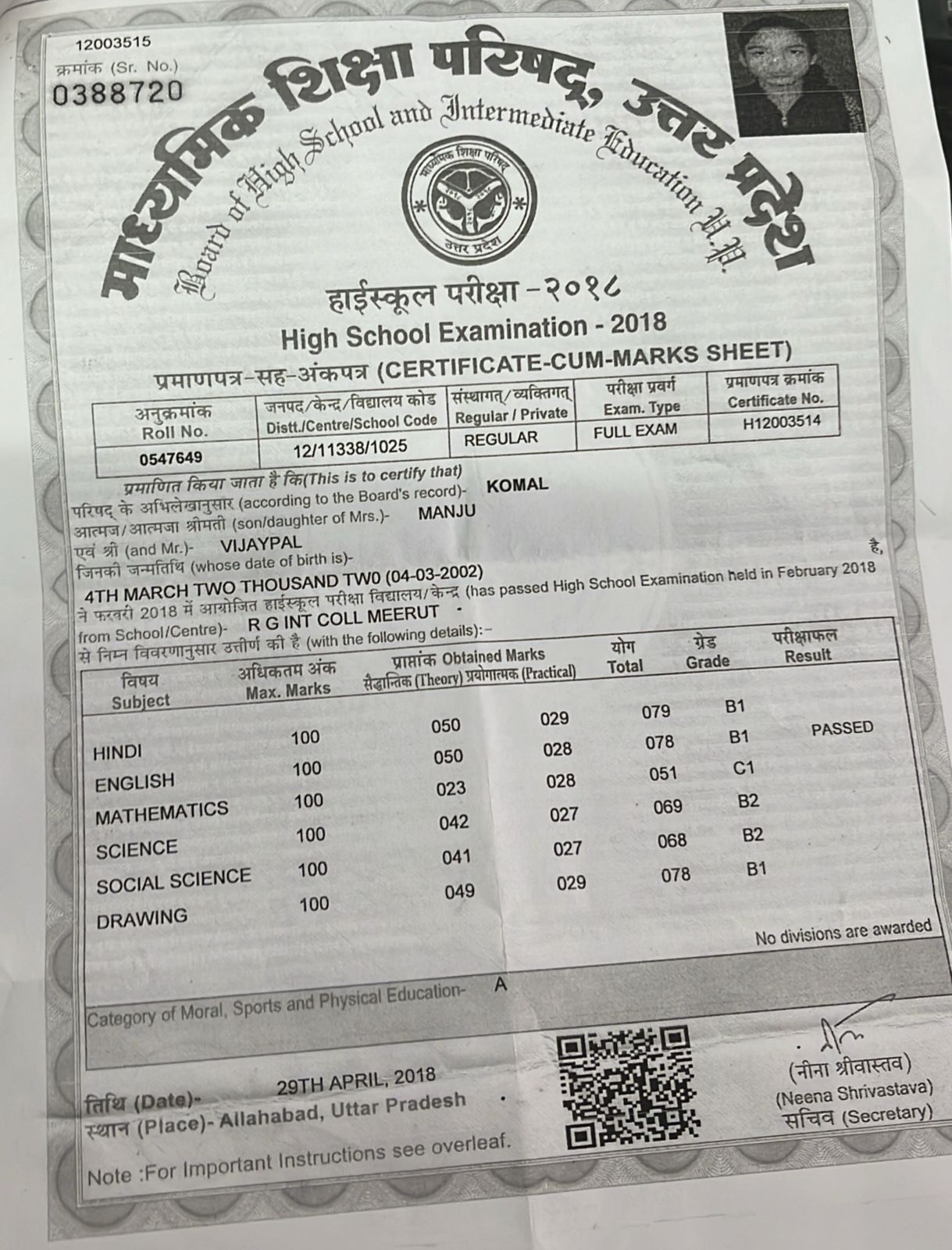 | Exam | Full Marks | Pass Marks | Marks Obtained |