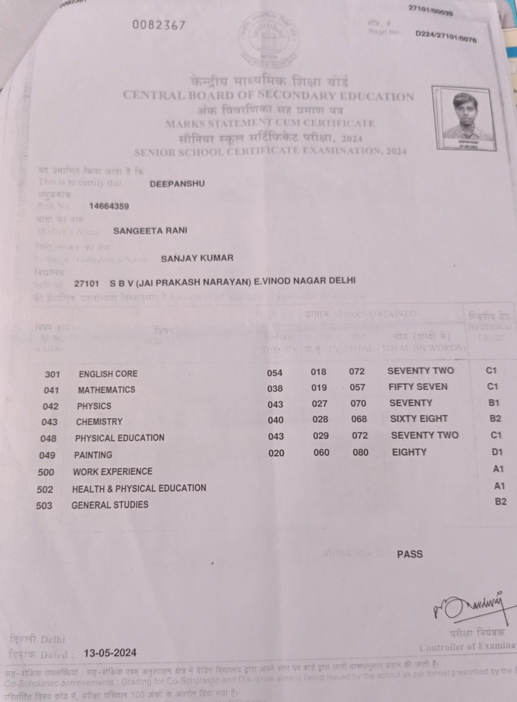 | Exam | Full Marks | Pass Marks | Marks Obtained |