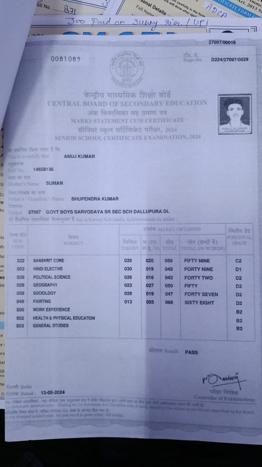 | Exam | Full Marks | Pass Marks | Marks Obtained |
