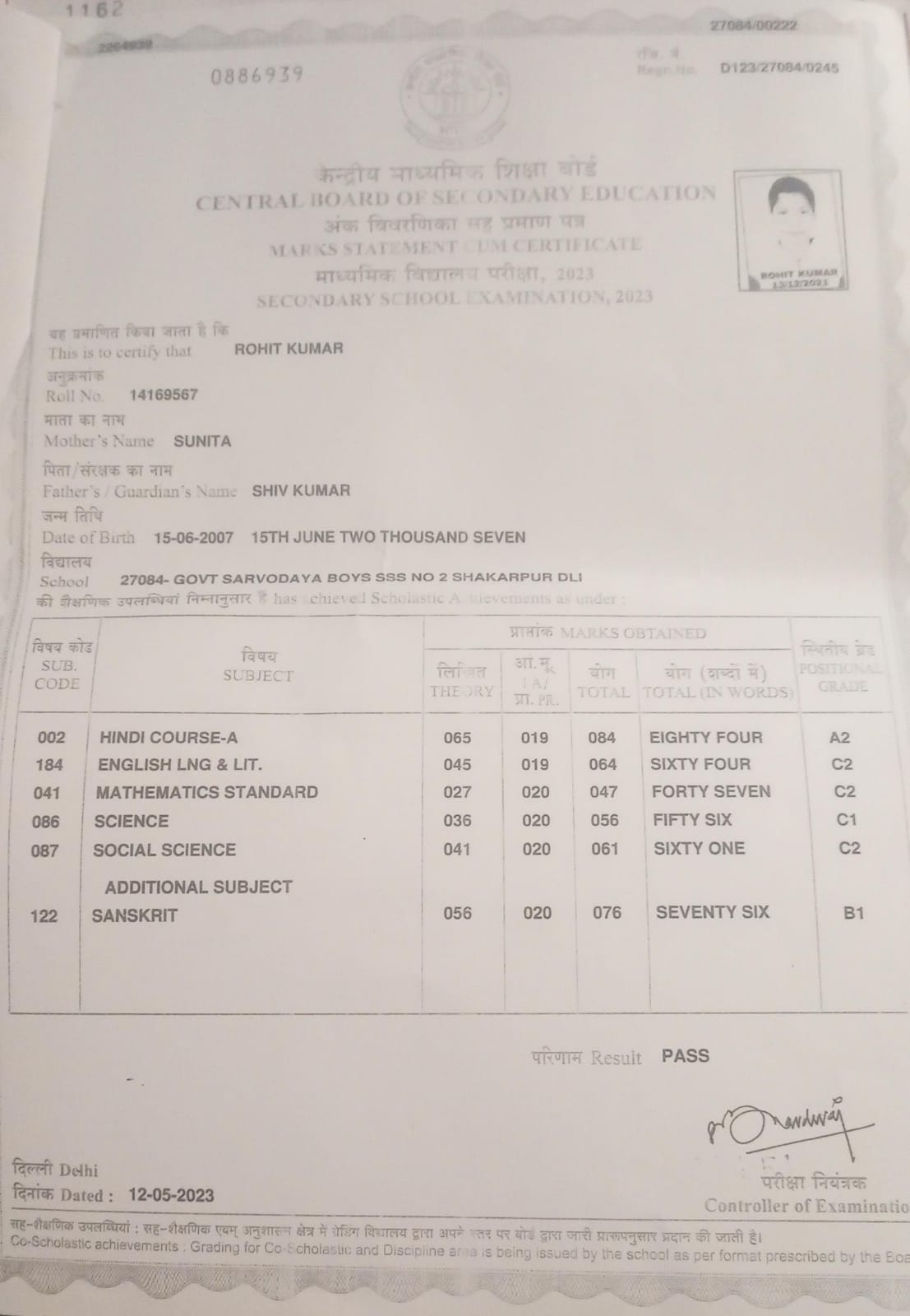 | Exam | Full Marks | Pass Marks | Marks Obtained |