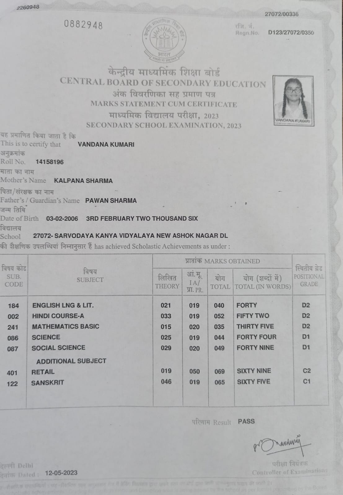 | Exam | Full Marks | Pass Marks | Marks Obtained |