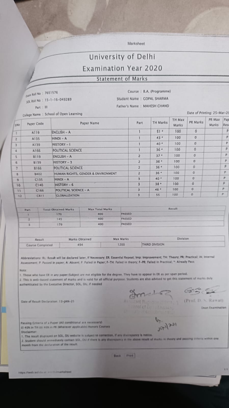 | Exam | Full Marks | Pass Marks | Marks Obtained |