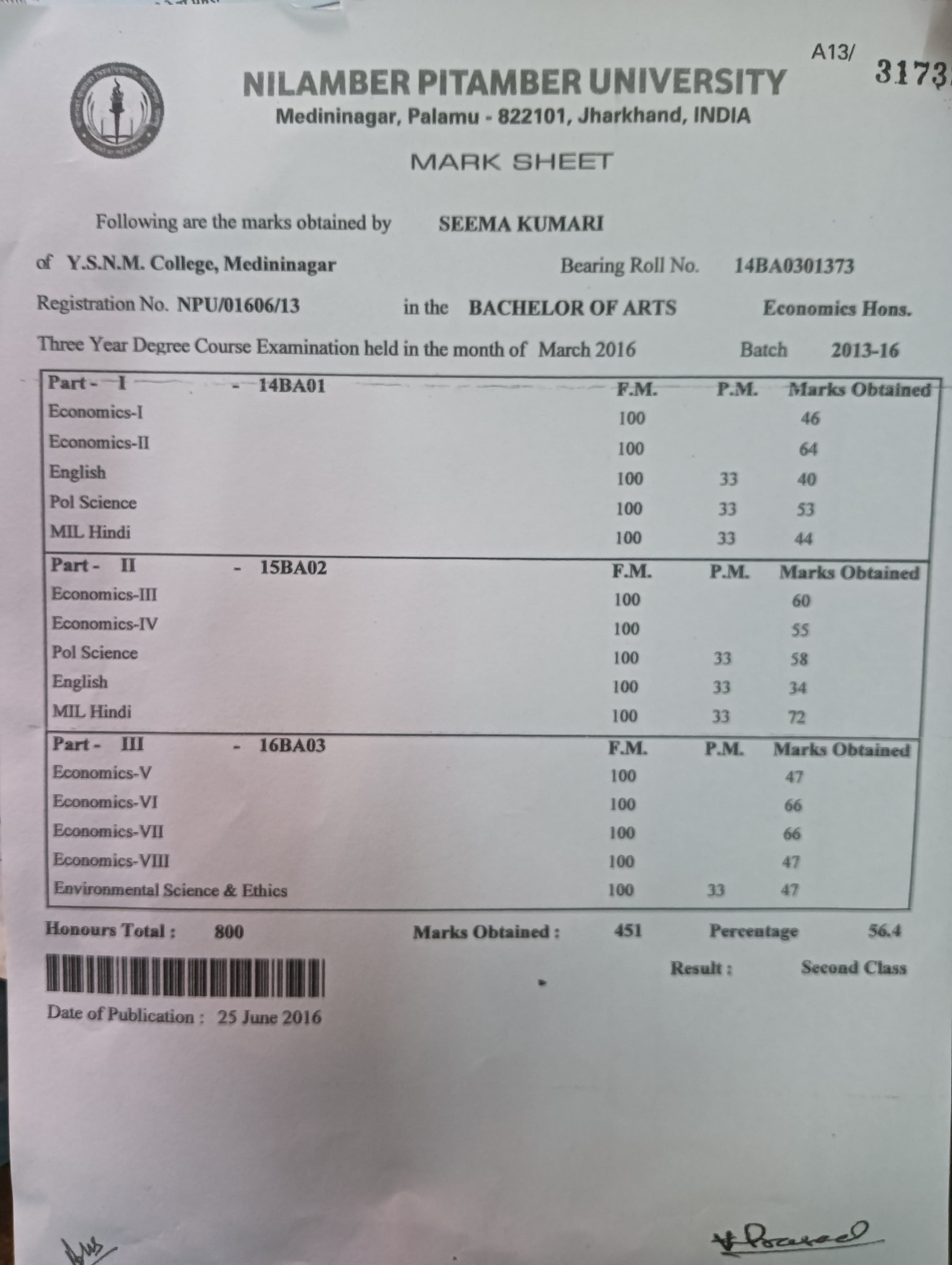 | Exam | Full Marks | Pass Marks | Marks Obtained |