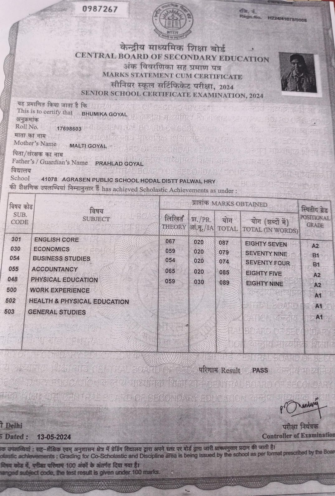 | Exam | Full Marks | Pass Marks | Marks Obtained |