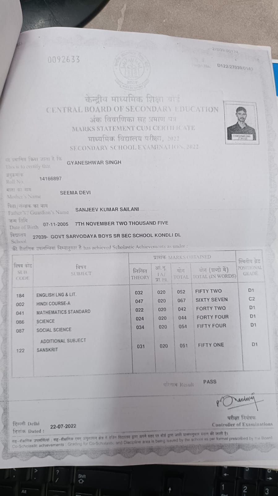 | Exam | Full Marks | Pass Marks | Marks Obtained |