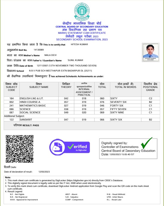 | Exam | Full Marks | Pass Marks | Marks Obtained |
