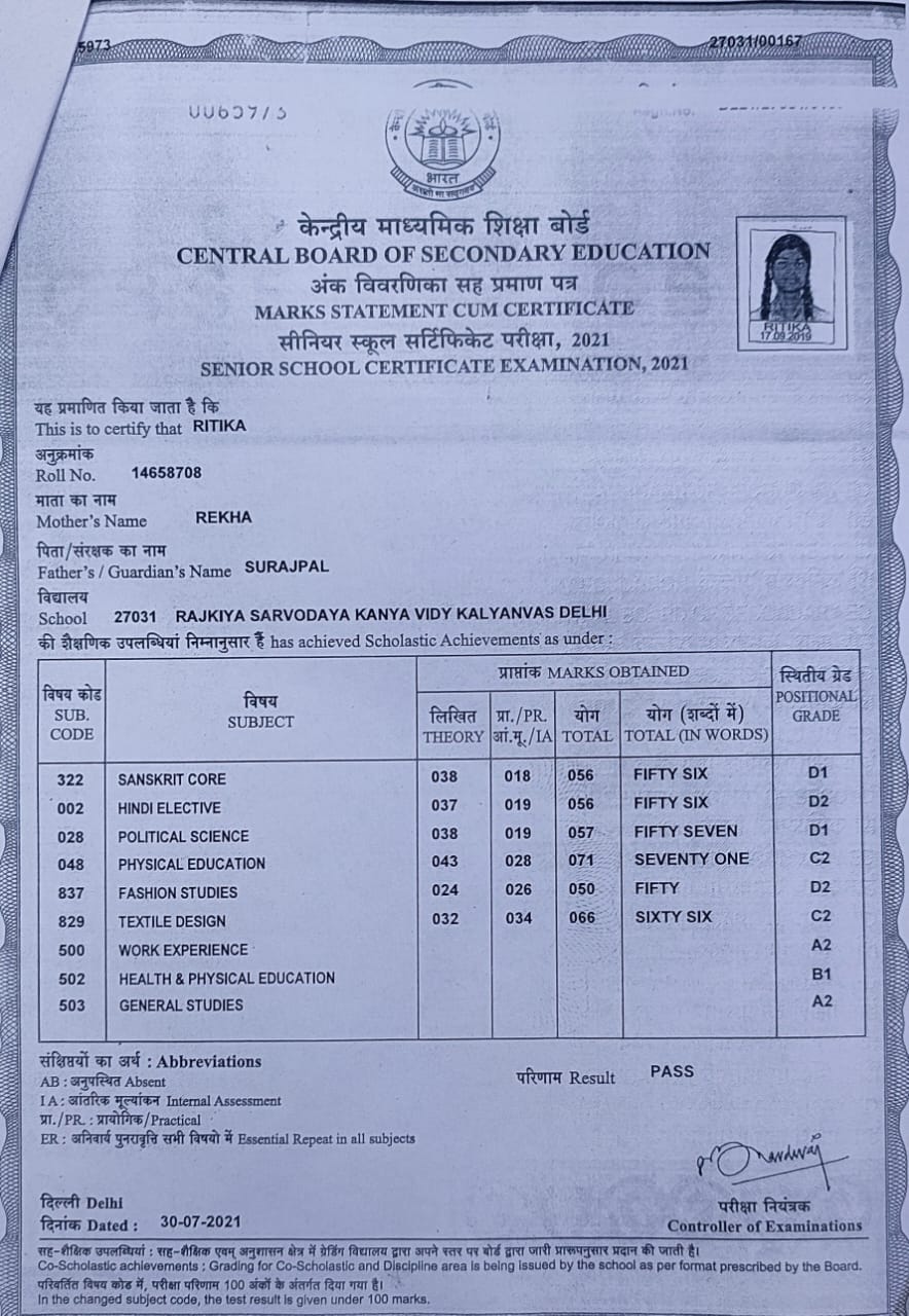 | Exam | Full Marks | Pass Marks | Marks Obtained |