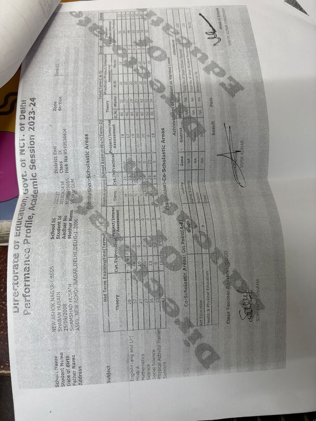 | Exam | Full Marks | Pass Marks | Marks Obtained |