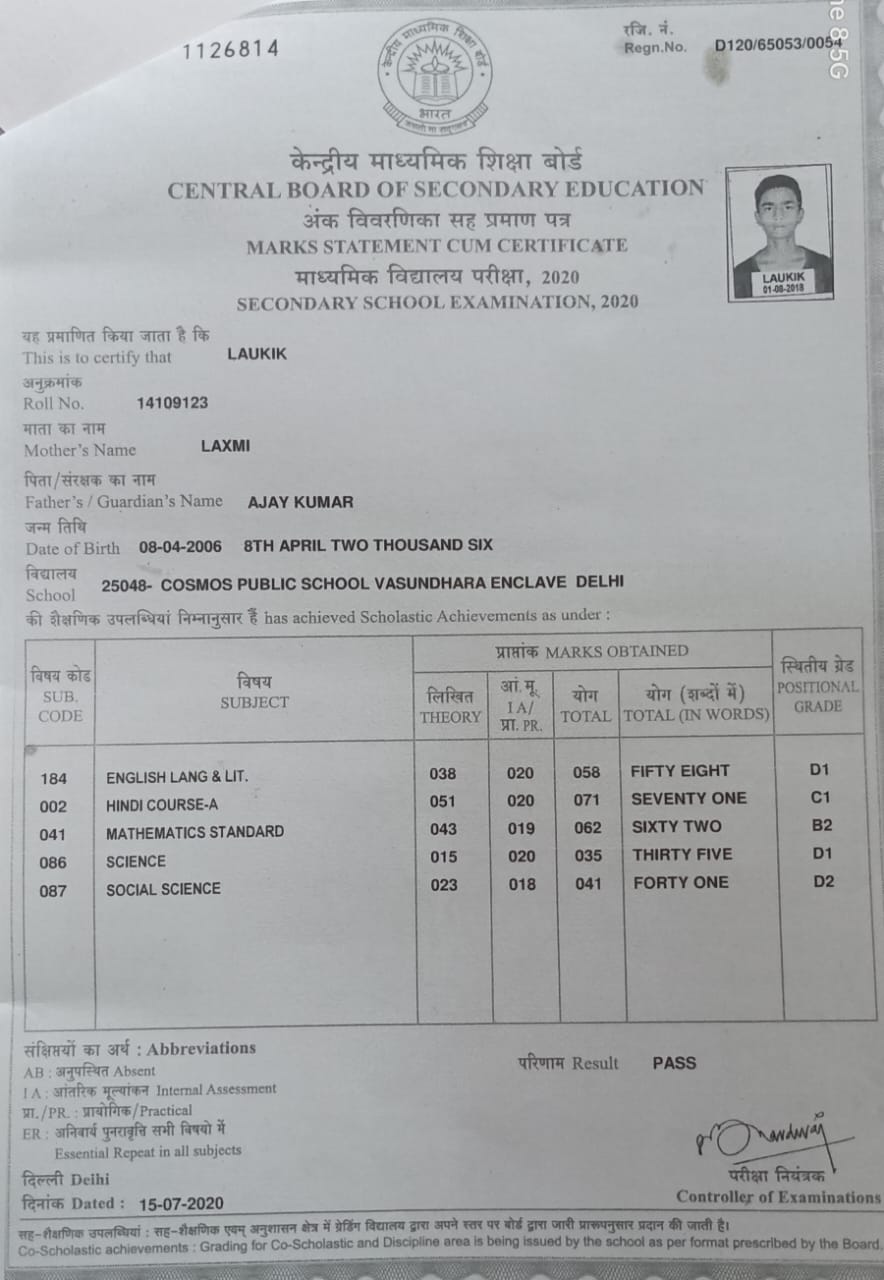 | Exam | Full Marks | Pass Marks | Marks Obtained |