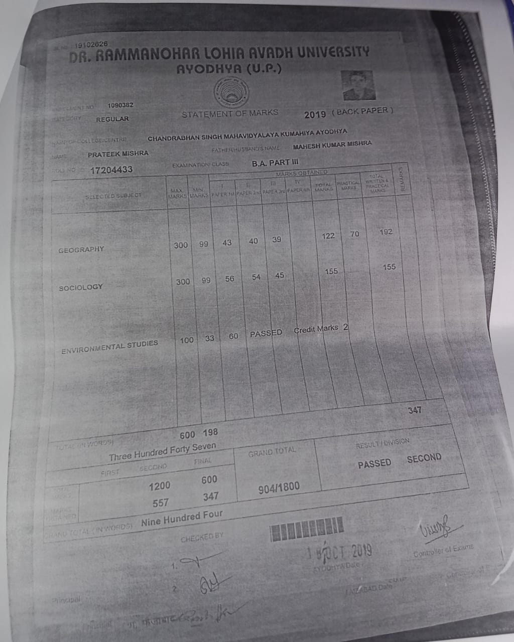 | Exam | Full Marks | Pass Marks | Marks Obtained |