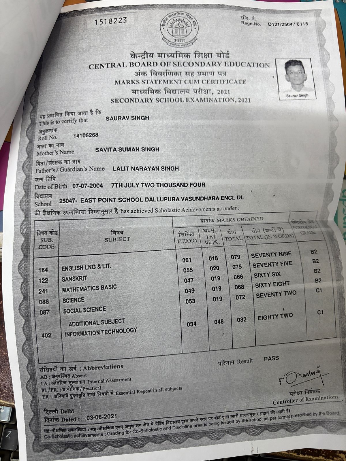 | Exam | Full Marks | Pass Marks | Marks Obtained |