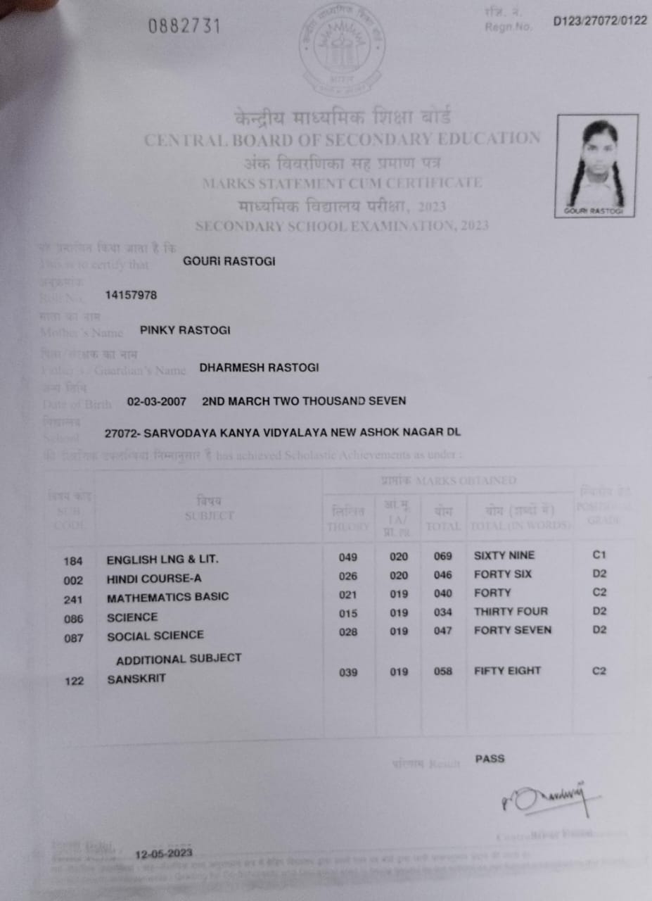 | Exam | Full Marks | Pass Marks | Marks Obtained |