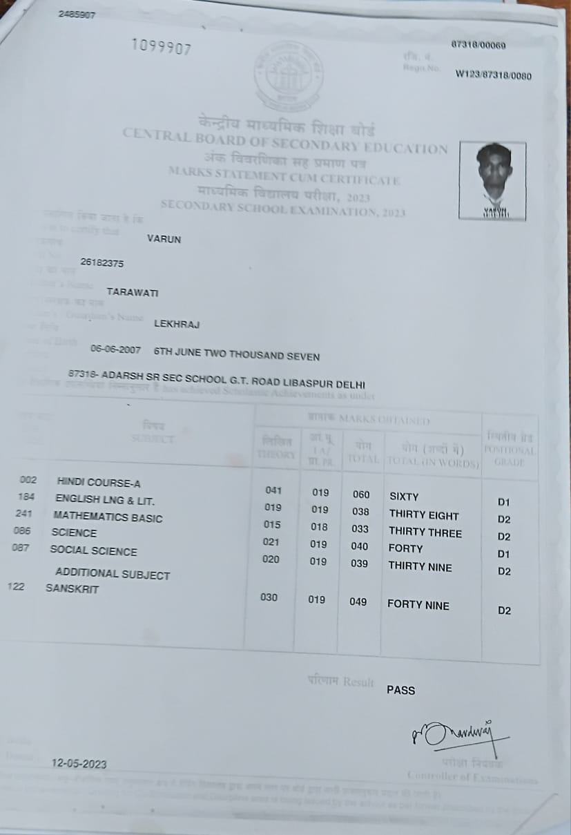 | Exam | Full Marks | Pass Marks | Marks Obtained |