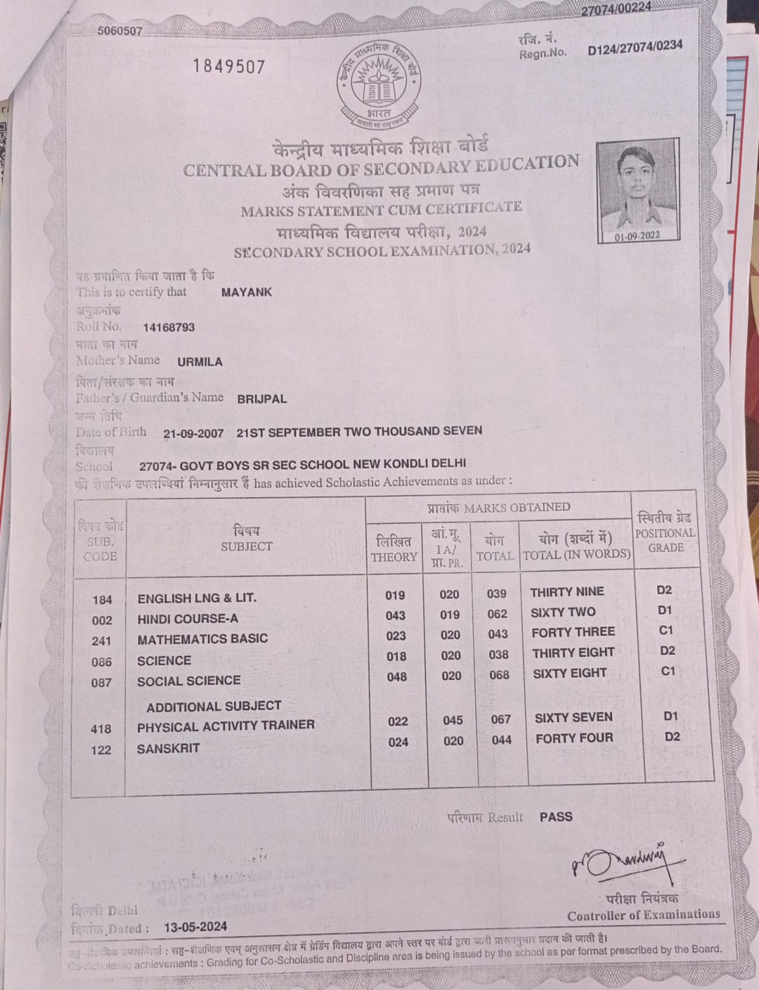 | Exam | Full Marks | Pass Marks | Marks Obtained |